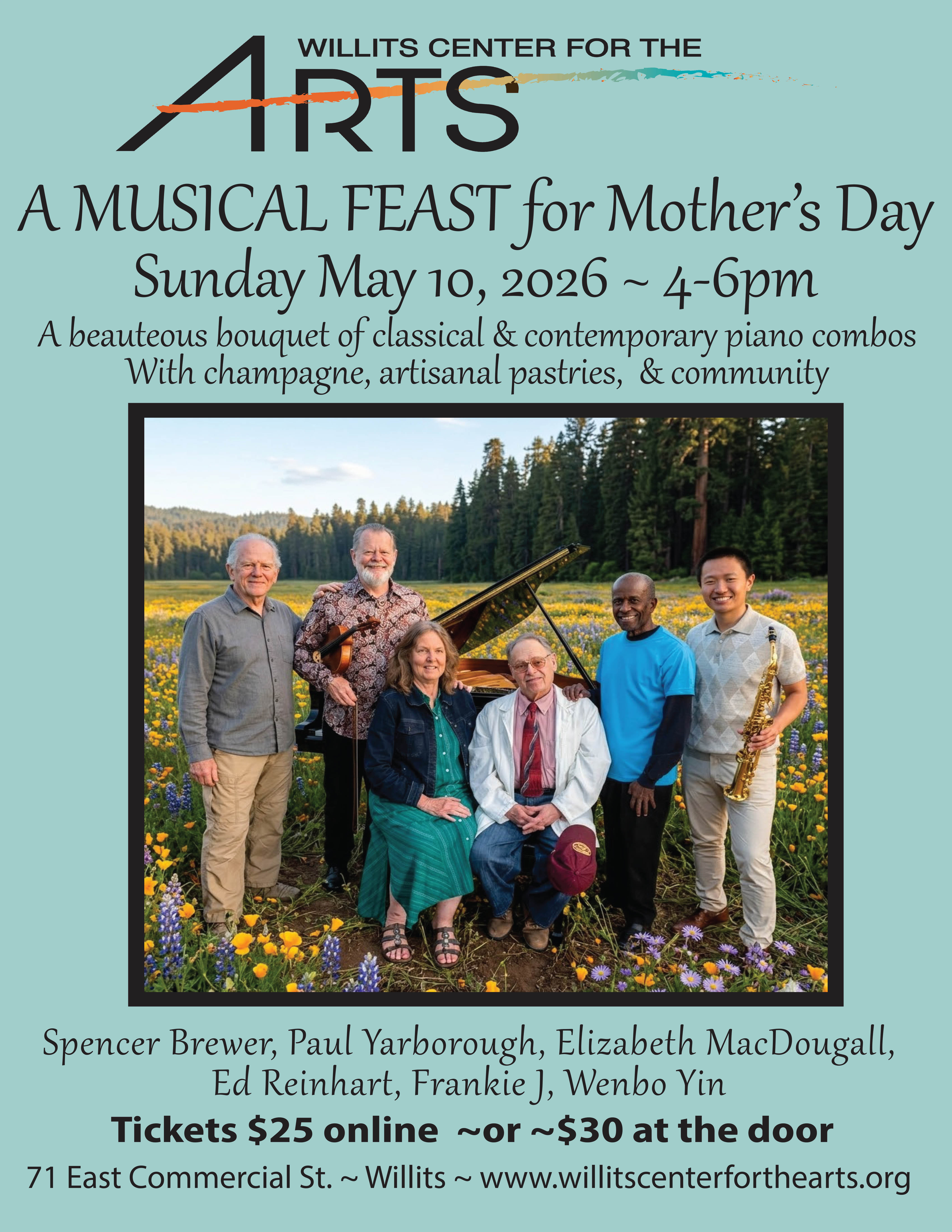 Bring your Mom, Dad, siblings, cousins or best friends to celebrate a spectacular Mother's Day musical feast in the beautiful Great Room at Willits Center for the Arts, Sunday May […]